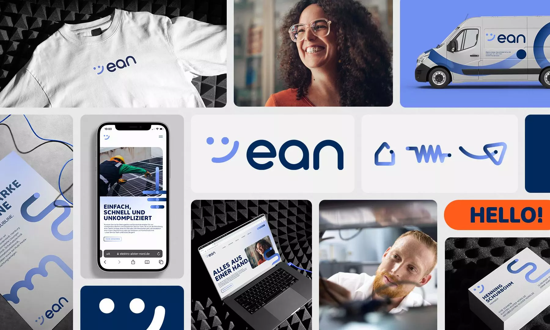 Modulares Design und eine neue Markenidentität, die den neuen Geschäftsfeldern Rechnung trägt. Indem wir ean als die modernen Elektrohandwerker inszenieren, brechen wir mit den klassischen Handwerker-Klischees.